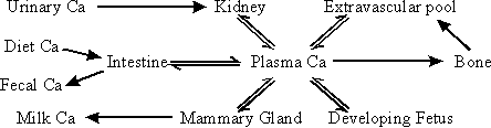 - Ca in plasma is in exchange with a pool about 35 times larger than the amount circulating in blood