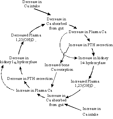 - A fall in blood Ca normally stimulates increases of plasma PTH and 1,25(OH)2D