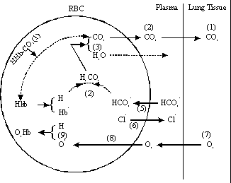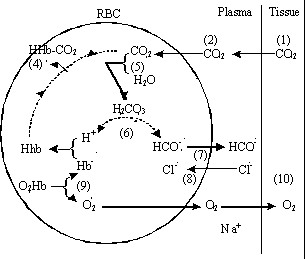- Chloride-bicarbonate shift in O2 and CO2 transport by RBC (See figures 1-4.)